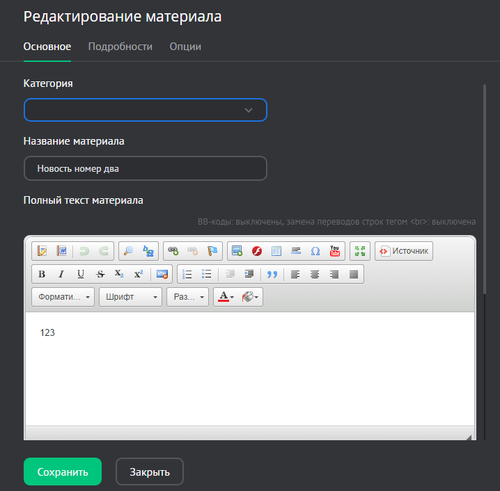 Редактирование новостей
