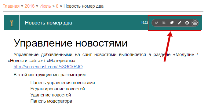 Другой способ редактирования новостей — через панель модератора — рассмотрен ниже.