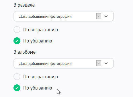 Чтобы информер выводил последние добавленные фотографии в разделах и категориях, вы должны настроить способ сортировки в разделах и категориях.
