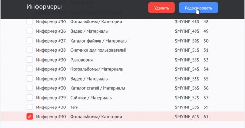Редактирование информера может понадобиться для настройки количества колонок для вывода, редактирования шаблона под свои нужды и, конечно, для ручного обновления информера.