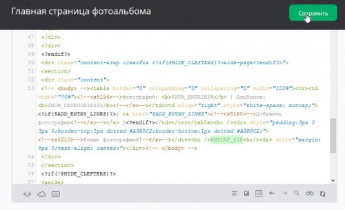 3. Установка кода информера и редактирование шаблона главной страницы модуля “Фотоальбомы”