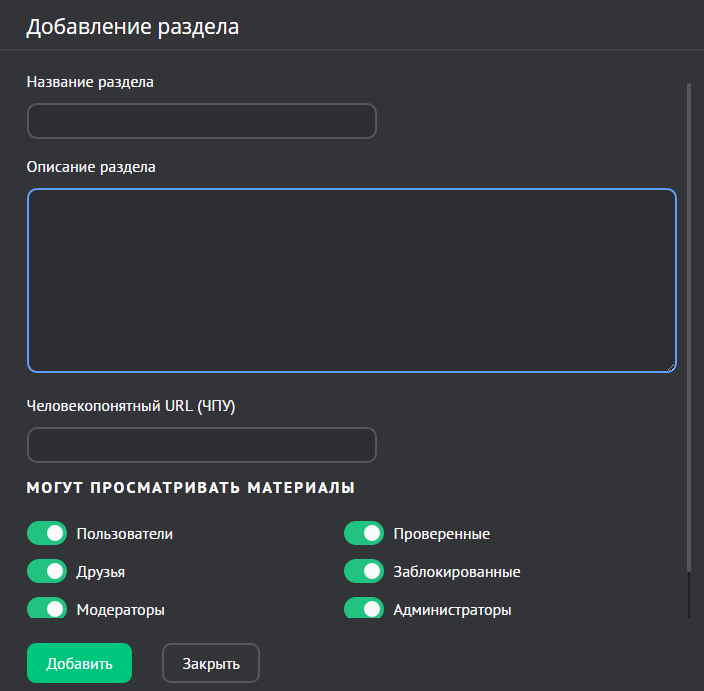 Как добавить раздел