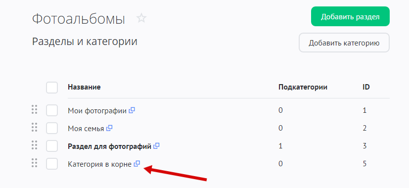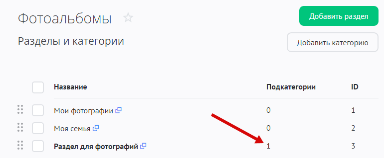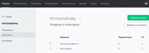 В этой инструкции вы научитесь управлять разделами и категориями в модуле «Фотоальбомы».