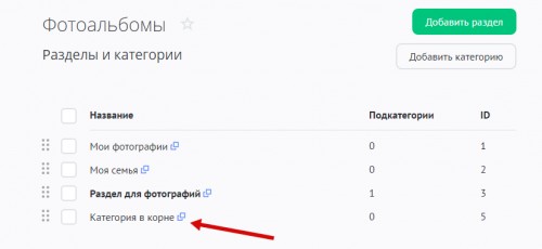 Управление разделами и категориями в модуле «Фотоальбомы»