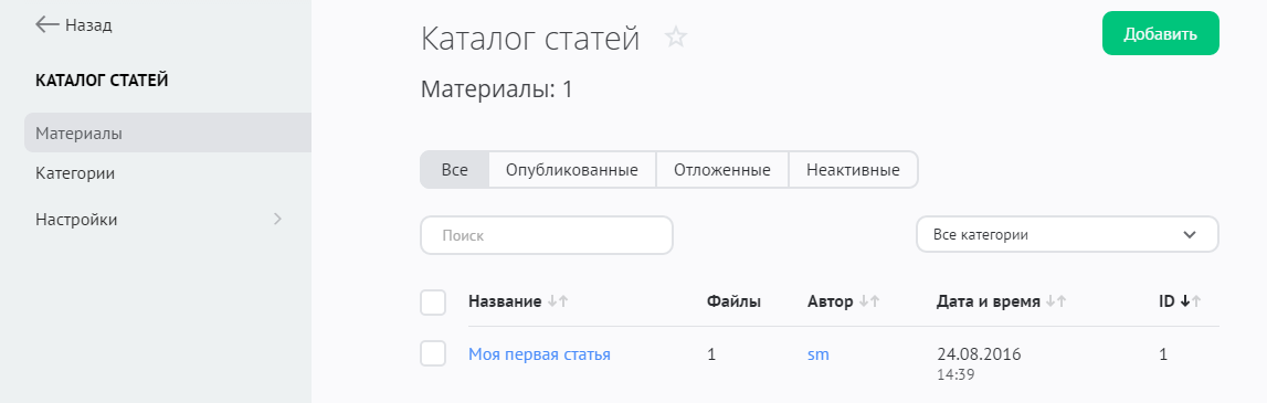 Как добавить статью в каталог
