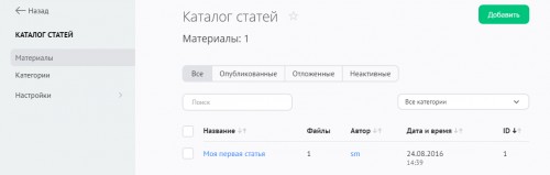 Когда будет готово, нажмите на кнопку «Добавить», и статья появится в списке: