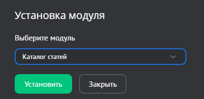 Выберите модуль «Каталог статей» и нажмите на кнопку «Установить»: