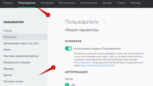 Чтобы настроить права пользователей в модуле «Онлайн-игры», в панели управления сайтом выберите «Пользователи» / «Группы»: