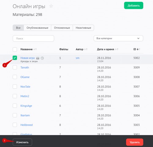 Другой способ редактирования игр — через панель модератора — рассмотрен ниже.
