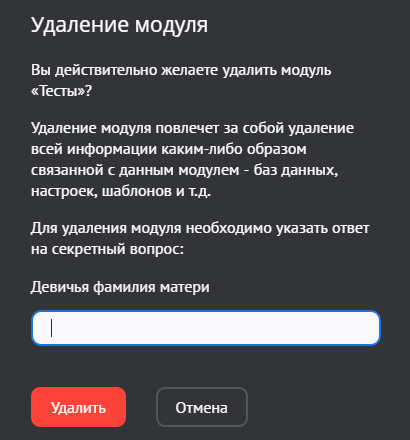 Для удаления модуля потребуется ввести ответ на секретный вопрос: