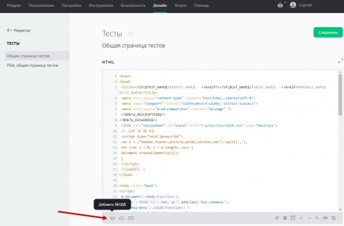За отображение всех страниц модуля отвечает шаблон «Общая страница тестов». Если включена PDA-версия сайта, то для нее будет отображен свой шаблон — «PDA: Общая страница тестов».