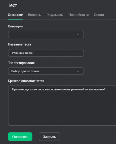 Измените данные теста и нажмите на кнопку «Сохранить». Чтобы узнать больше о полях, которые могут быть прикреплены к тестам, читайте инструкцию о добавлении теста.
