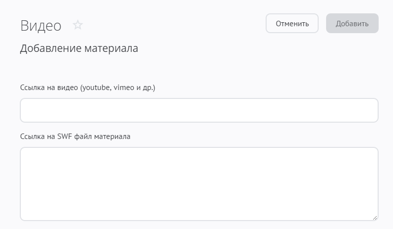 При переходе по этой ссылке откроется страница добавления видео.