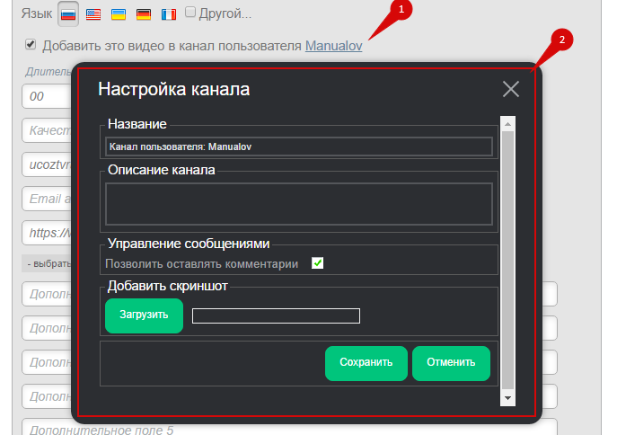 - Канал. Каналы позволяют фильтровать видео. По умолчанию видео добавляется в канал пользователя. Данный способ добавления видео позволяет выбрать созданный ранее канал, который не является пользовательским.