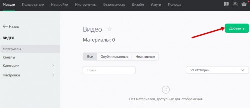 - Добавление видео с главной страницы модуля