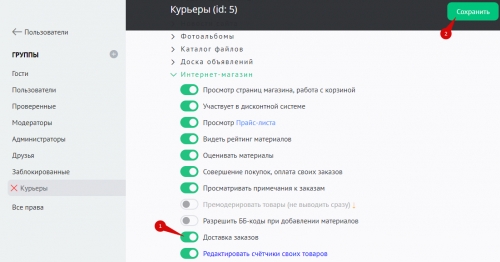 Укажите в настройках, что будет использоваться группа "Курьеры":