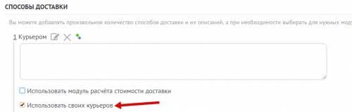 Чтобы к заказу можно было назначить курьера, необходимо добавить соответствующий способ доставки. Перейдите в панель управления: “Интернет-магазин” / “Способы оплаты, доставки, валюты и курсы” / “Добавить способ доставки”.