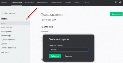 Создание группы пользователей “Курьеры”