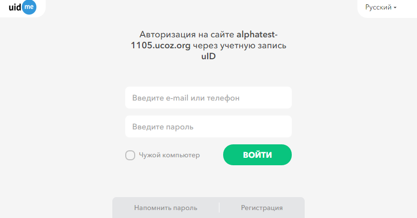 Нажмите на значок “U” и в открывшемся окне введите email и пароль своего uID-аккаунта: