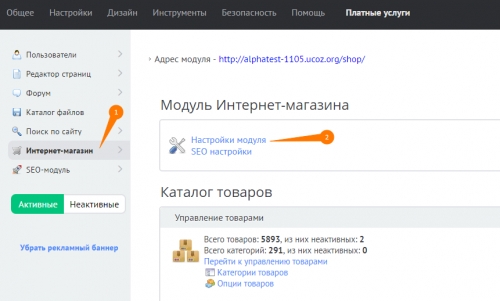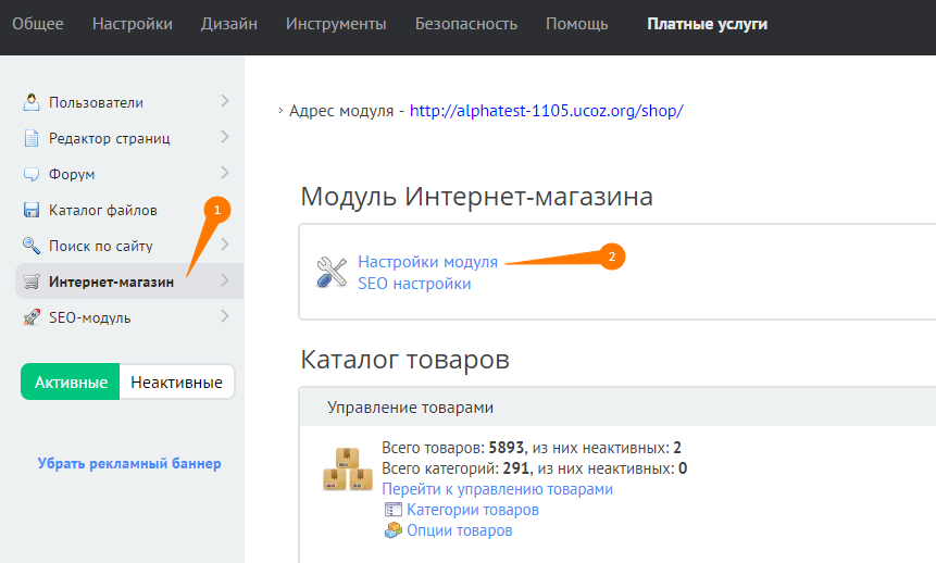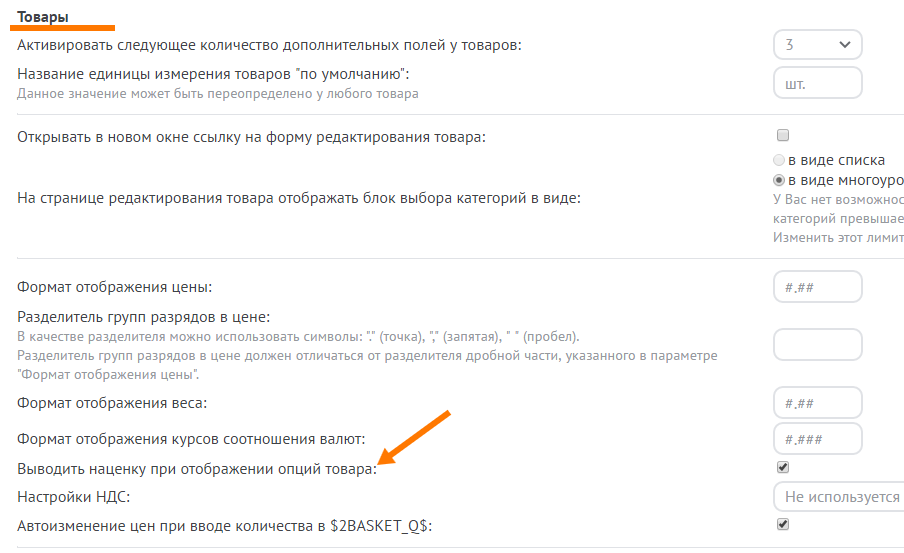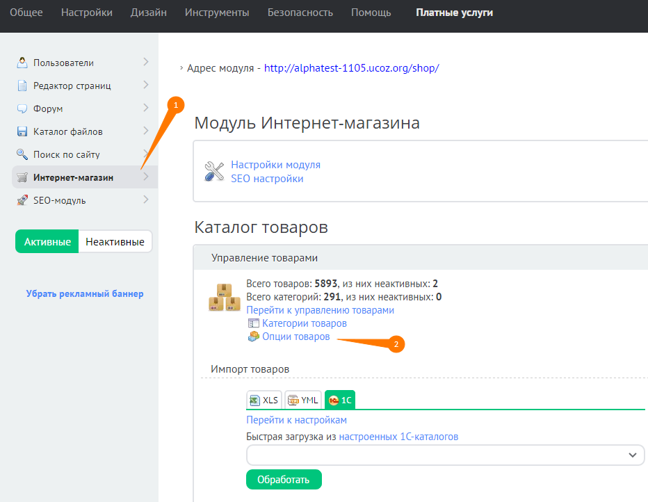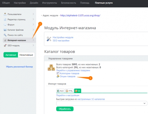 Чтобы изменить настройки опций, перейдите в панель управления: “Интернет-магазин” / “Настройки модуля”: