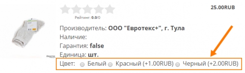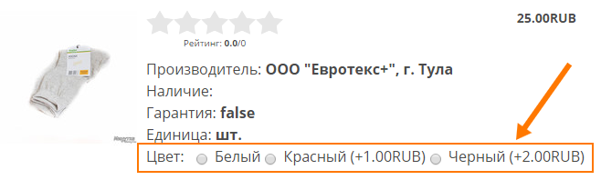 Опции бывают трех видов: галочка (checkbox), выпадающий список (select), переключатель (radio). Вид опции задается при ее создании.