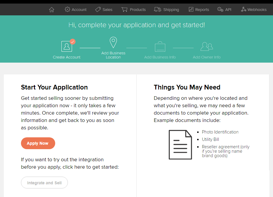 Если все указано верно, то вы будете направлены в личный кабинет 2checkout. Теперь необходимо указать данные о местоположении магазина. Для этого нажмите на кнопку «Apply Now» и следуйте дальнейшим инструкциям: