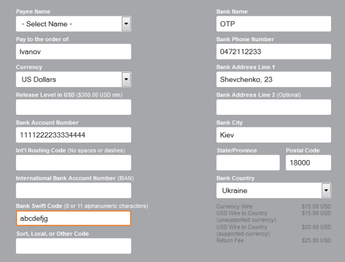 Сотрудники сервиса вручную проверяют данные пользователей, поэтому необходимо загрузить изображения ваших документов согласно анкете. Для верификации аккаунта необходимо ввести реквизиты вашей банковской карты, на которую будет производиться вывод средств. На странице профиля Account / Bank Account нажмите на кнопку «Banking Wizard»: