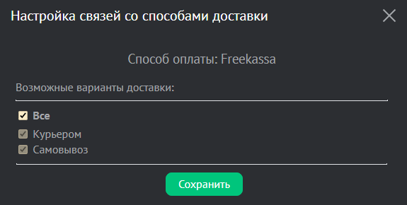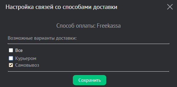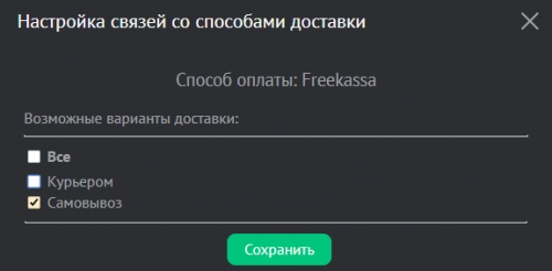 Появится окно, в котором необходимо отметить, какой способ доставки будет доступен. По умолчанию доступны все:
