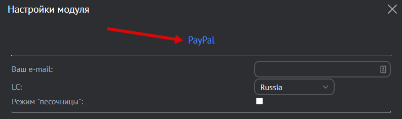 Подключение способа оплаты PayPal