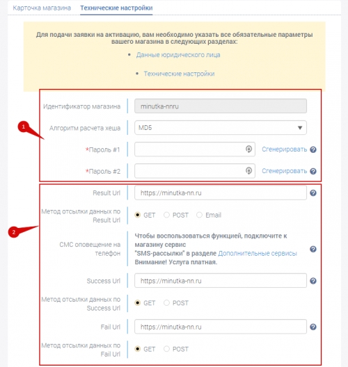 Данные во втором блоке заполняются после добавления способа оплаты в магазине. Поэтому, не закрывая вкладки с техническими настройками магазина, переходите к следующему этапу настройки.