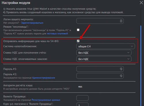 Теперь можно переходить к настройкам фискализации, если это требуется, или завершить установку способа оплаты.