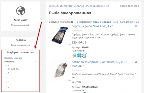 - Разместите фильтры товаров в каталоге