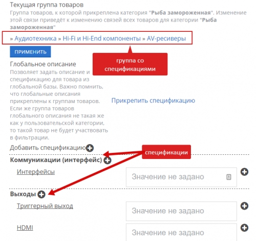 Спецификации товаров
