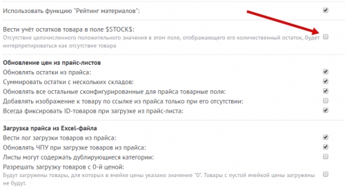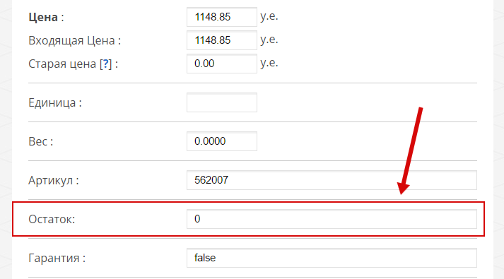 Важно! Отсутствие целочисленного положительного значения в поле $STOCK$, отображающего его количественный остаток, будет интерпретироваться как отсутствие товара.