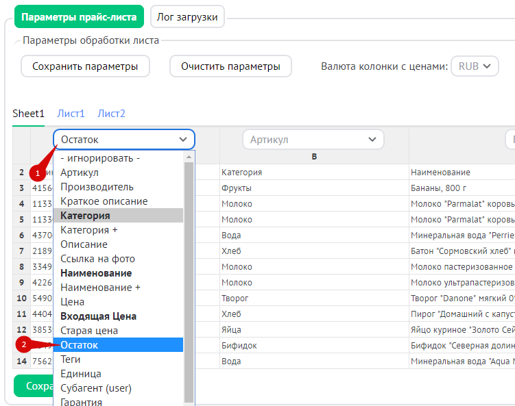 - импортировать остатки из прайсов XLS и 1C