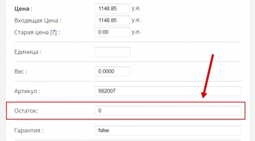 - через форму редактирования товара — укажите число в поле “Остаток”
