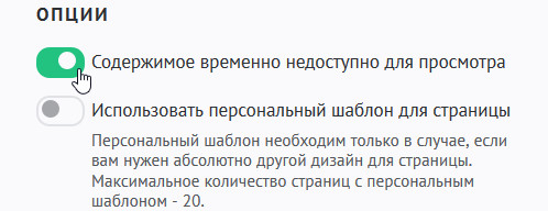 это означает, что в “Опциях страницы” у вас поставлена метка на пункте “Содержимое временно недоступно для просмотра“.