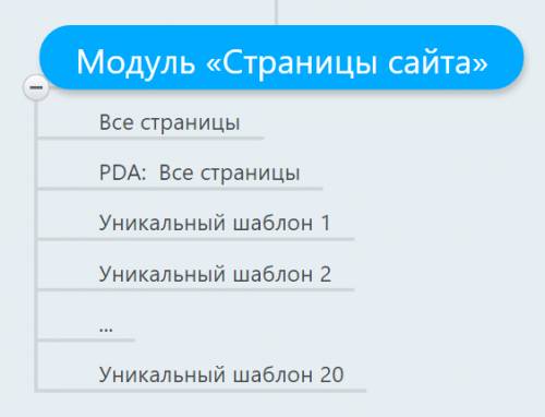 Таким образом, для управления видом модуля «Страницы сайта» может быть использовано до 22 шаблонов — по одному шаблону «Все страницы» на полную и PDA-версию, а также 20 уникальных шаблонов:
