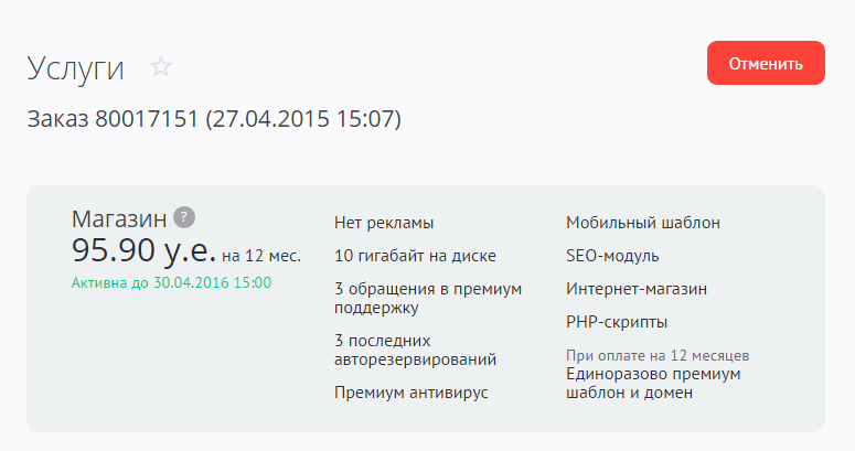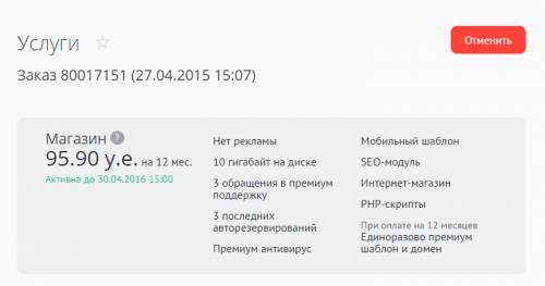 Отменить действие любой платной услуги вы можете в разделе оплаченных заказов: Панель управления → Услуги → Оплаченные заказы.