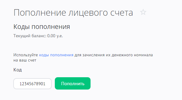 Активировать денежные средства с помощью кода вы можете в разделе пополнения лицевого счета: Панель управления → Услуги → Пополнение лицевого счета: Коды пополнения.