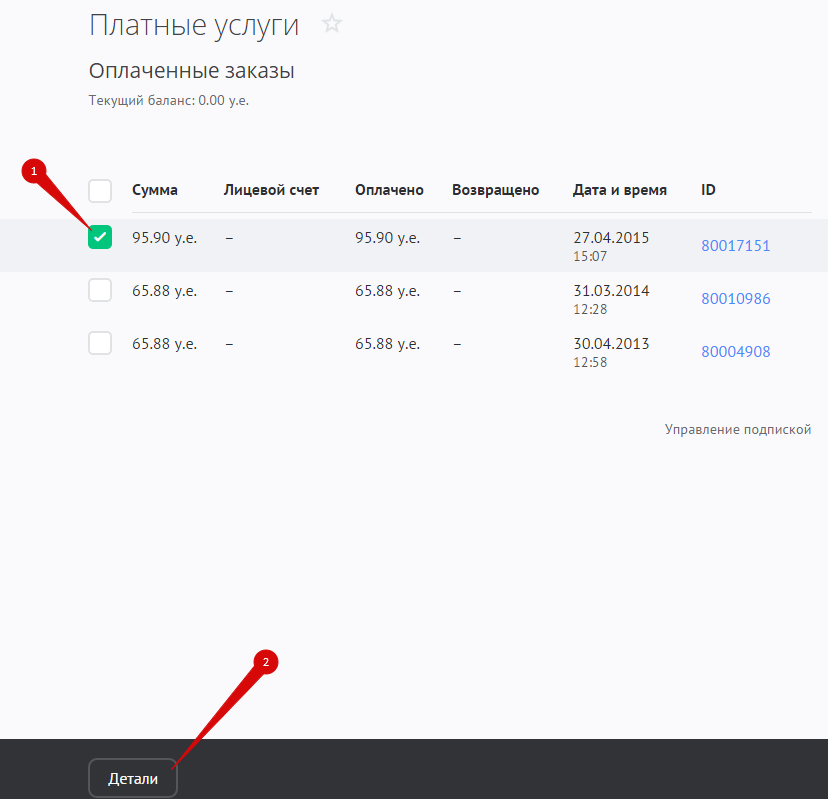 2. Для активации приобретенного пакета вам понадобится отключить действующий старый пакет услуг. Отменить действие любой платной услуги вы можете в разделе оплаченных заказов: Панель управления → Услуги → Оплаченные заказы.