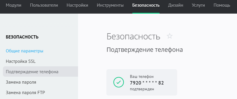 Кроме того, при передаче сайта другому владельцу на привязанный телефонный номер будет предварительно выслано SMS с кодом подтверждения.