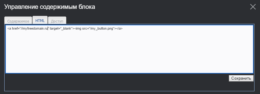 - Загрузить на сайт изображение и получить ссылку на него. Для этого можно воспользоваться файловым менеджером.