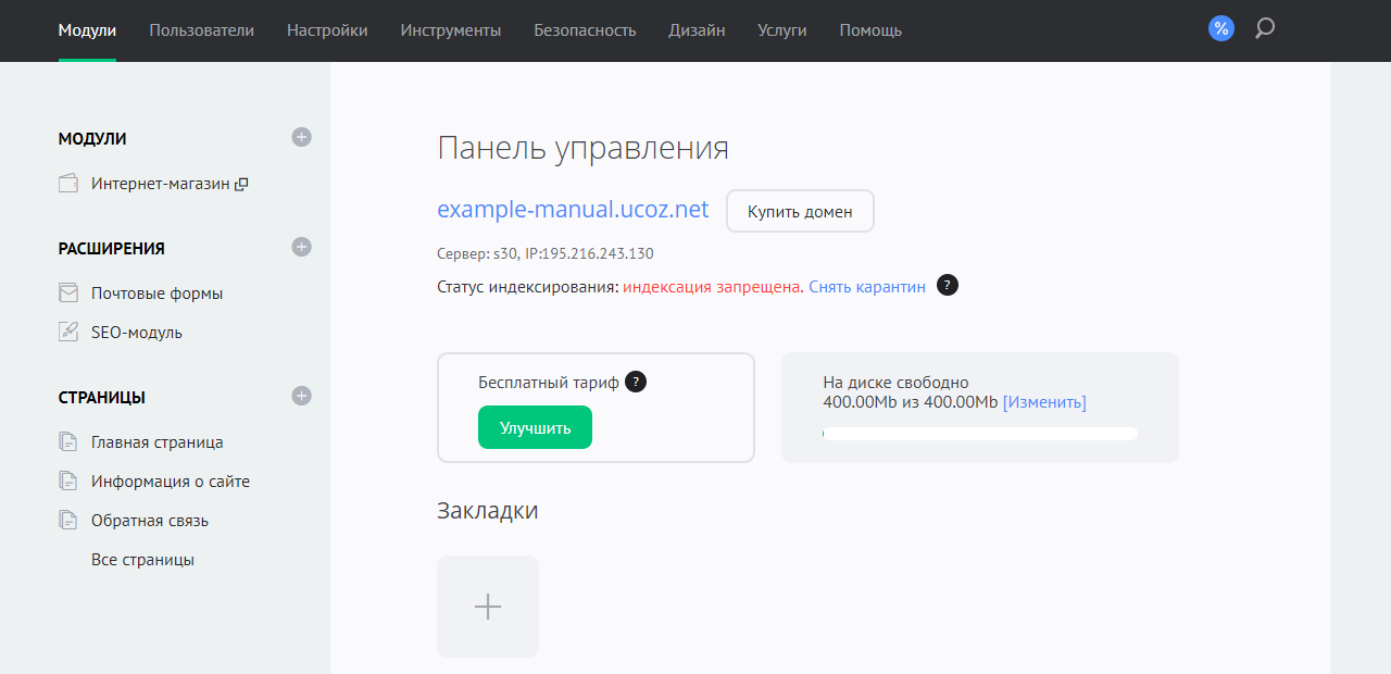 Поздравляем, теперь у вас есть собственный сайт! После завершения основных настроек конфигурации сайта вы автоматически будете перенаправлены в панель управления вашим проектом.