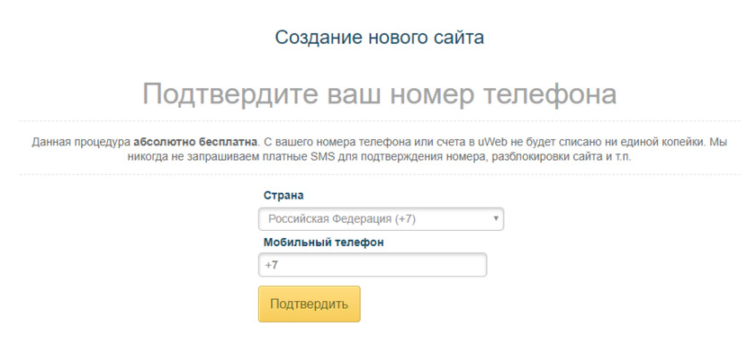 Чтобы создавать сайты в системе uWeb, потребуется зарегистрироваться. Регистрация бесплатна, и после ее прохождения вы сможете создавать неограниченное количество сайтов.