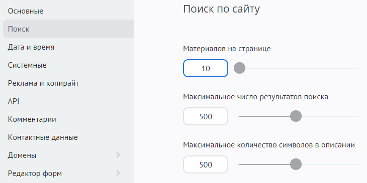 - Материалы на странице — количество материалов на одной странице (к другим материалам можно перейти с помощью переключателя страниц).