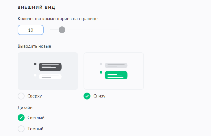 Доступно два дизайна комментариев: светлый и темный.