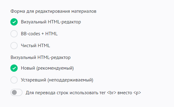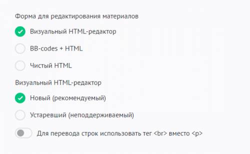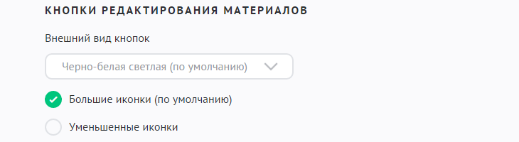 Настройки позволяют выбрать внешний вид кнопок редактирования материалов на сайте. Эти кнопки видны всем, кто имеет право добавлять и редактировать материалы на сайте.