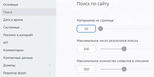 - Дополнять результаты поиска по тегам результатами поиска по сайту — включает в результаты как совпадения в названии и тексте материала, так и в поле «Теги материала». Это позволит получить ещё больше найденных материалов по каждому поисковому запросу.
