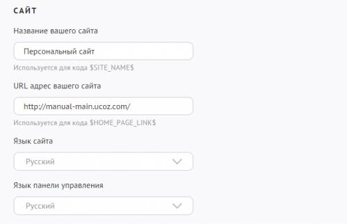 Язык панели управления — эта опция позволяет выбрать необходимый язык для панели управления вашего сайта. Ещё раз повторим, что опции «Язык панели управления» и «Язык сайта» работают независимо друг от друга. К примеру, сайт может иметь панель управления на английском языке, а язык сайта — русский. И наоборот.